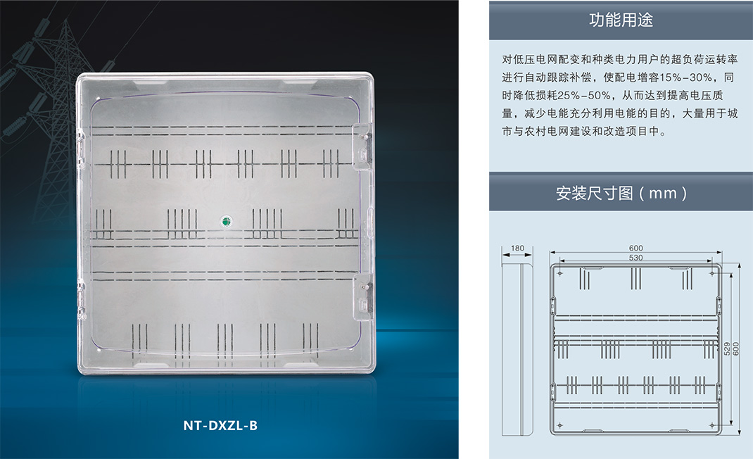 電表箱生產(chǎn)廠家-浙江南騰電氣有限公司研發(fā)的NT系列透明塑料電表箱,采用進(jìn)口聚碳酸酯(PC)和阻燃ABS工程塑料制成。具有抗沖擊、抗老化、耐腐蝕、透明度高、抗紫外線、安裝方便等優(yōu)點(diǎn),并且具有用電安全保護(hù),用戶分離控制,數(shù)據(jù)采集, 防盜電等功能。產(chǎn)品適合安裝電子式、機(jī)械式、智能IC卡預(yù)付式、智能多費(fèi)率式電表。南騰NT系列透明塑料電表箱自推出市場以來,憑借其完美的設(shè)計(jì)理念,在電表箱行業(yè)遙遙領(lǐng)先。