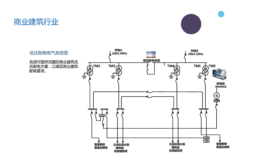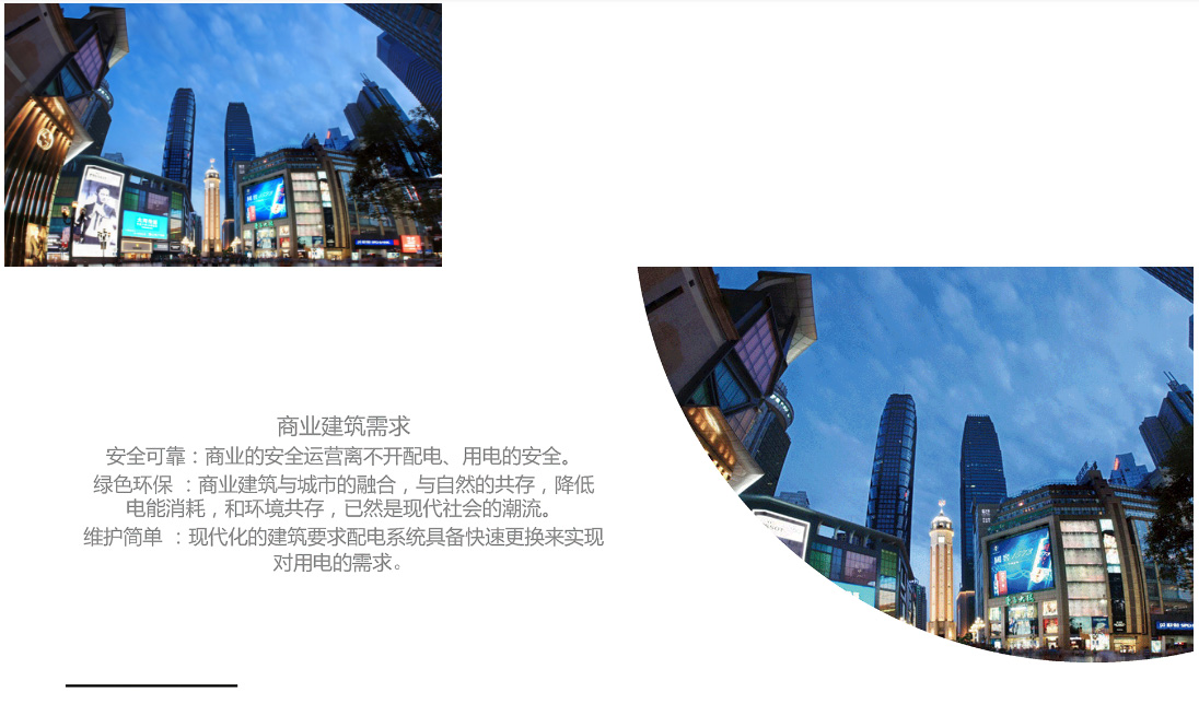 商業(yè)建筑包含供電部分、機電設(shè)備、消防系統(tǒng)等。強調(diào)選擇性保護、安全可靠、綠色環(huán)保、維護簡單,鴻坤連續(xù)多年服務(wù)于高端商業(yè)地產(chǎn)客戶,為客戶解決壓力和挑戰(zhàn),能為商業(yè)建筑系統(tǒng)提供多種個性化解決方案,以確保安全、綠色、低成本用電。